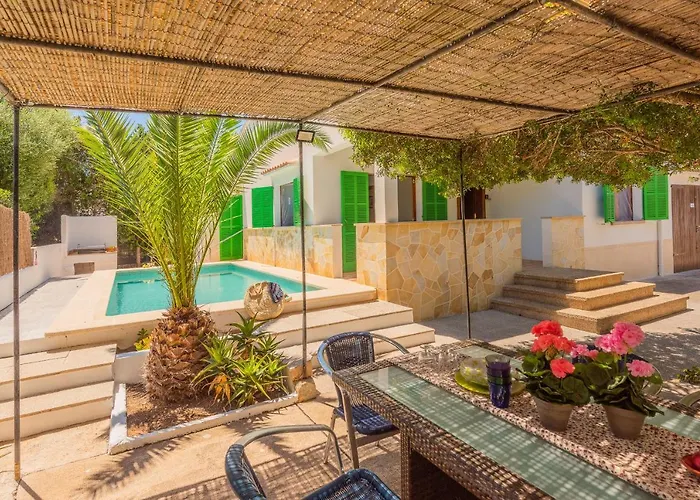 Villa Es Pinar med 1 sovrum, som ligger 3 km från Cala Santanys strand, har utomhuspool och trädgård för gästerna. Villan med 1 badrum erbjuder en privat pool samt solarium, där du kan koppla av efter en hektisk dag.